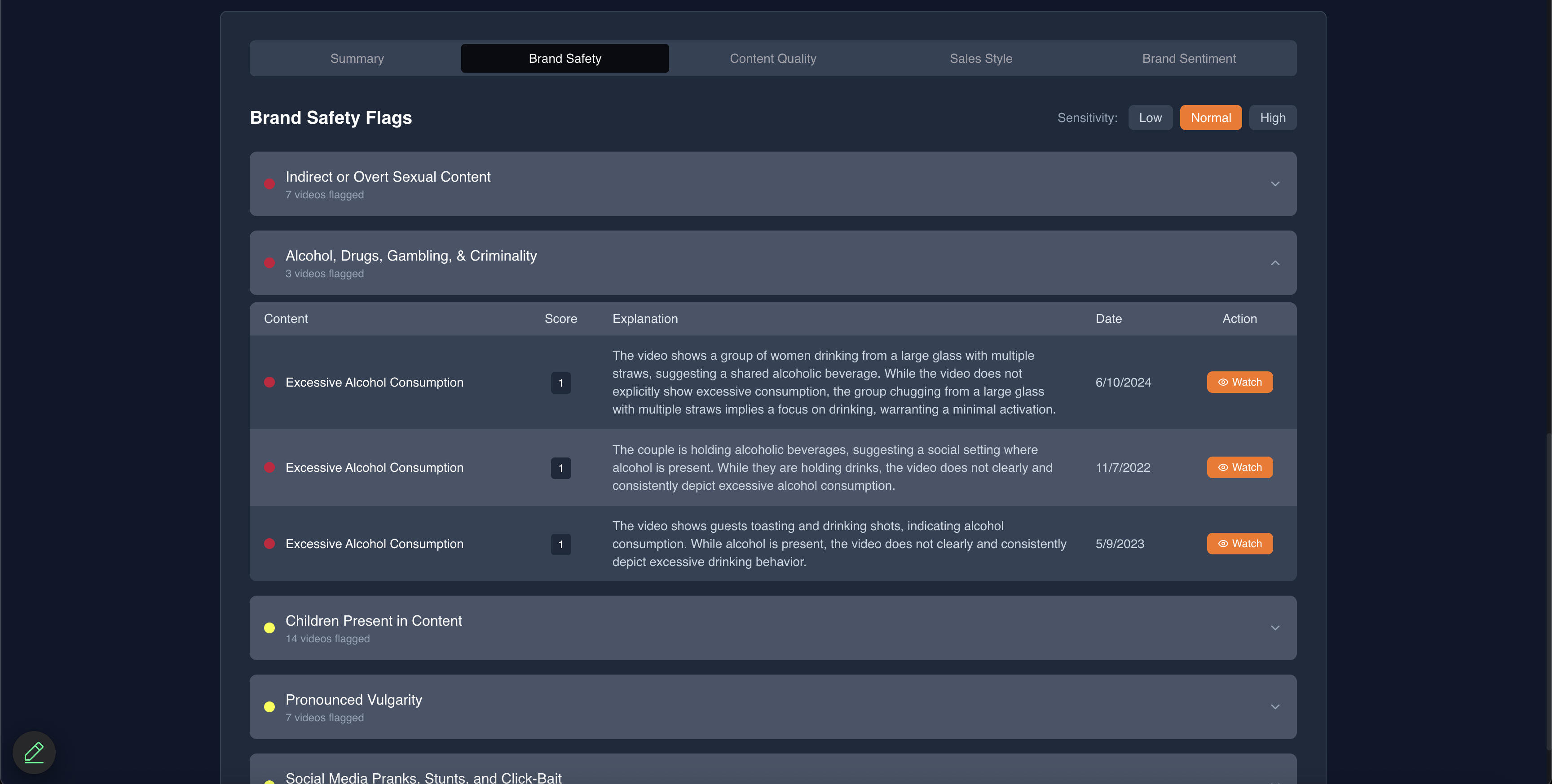 Every flagged moment includes clear, specific reasoning so teams understand exactly what was found and why. And with Katch’s always-on monitoring, brands can continuously track influencers throughout a campaign, getting alerted the moment new risks appear.